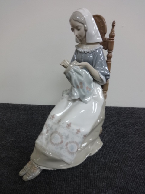 This is a large Llladro Figurine 'The Embroideress' Production 1974 - 1994, in mint condition.