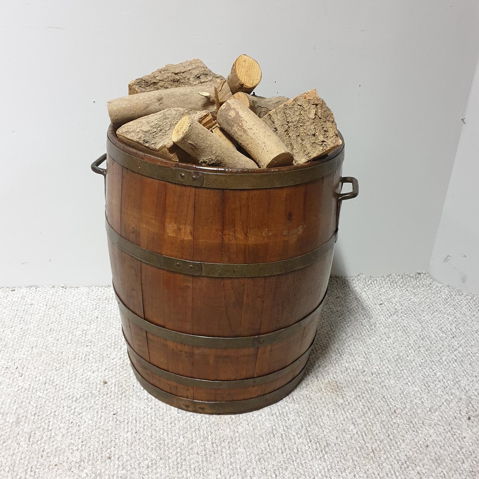 A very good oak coopered log bin in excellent condition, carrying handles.