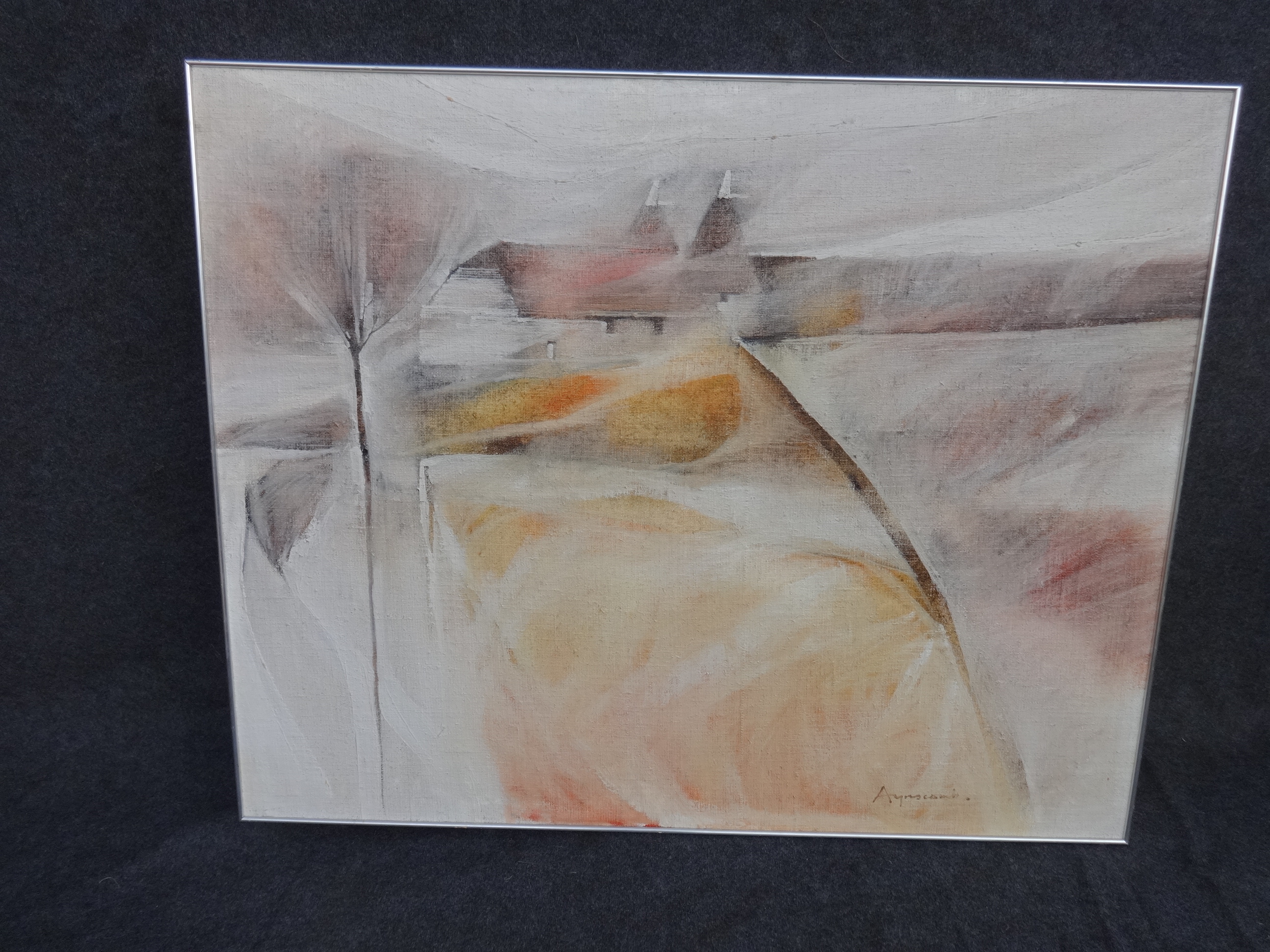 Martin Aynscomb-Harris 1937, large oil on canvas 'Oathouse II' signed, Mansard Gallery Label, in aluminium frame.