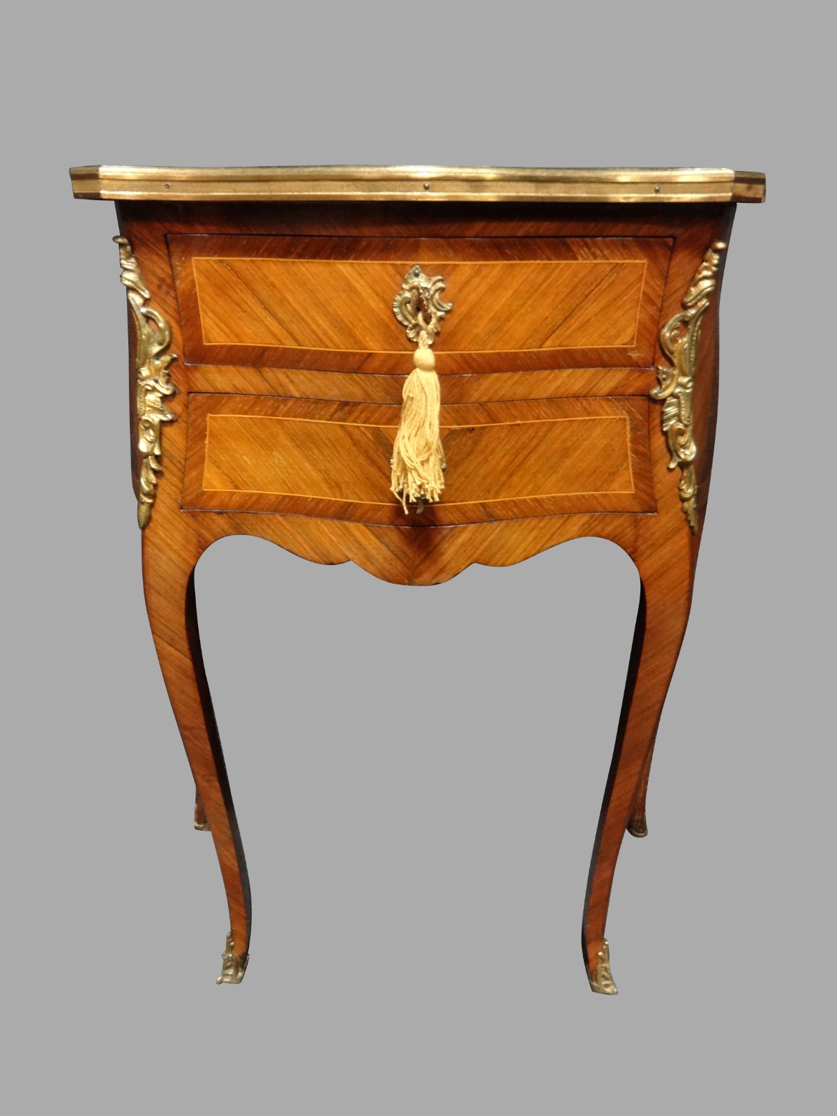 This is a very pretty Kingwood chest of two drawers, with very good ormolu mounts, brass gallery and original working key, in very good original condition.