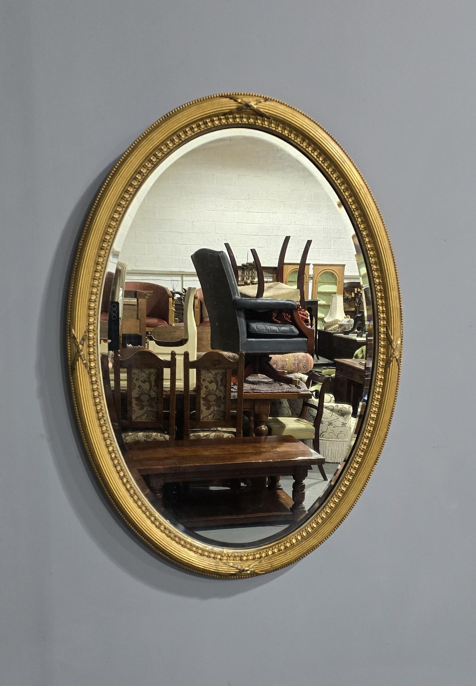 A super qualty Victorian oval gilt wall mirror, reeded frame with bow detailing, original bevelled mirror. Can be hung portrait or landscape.