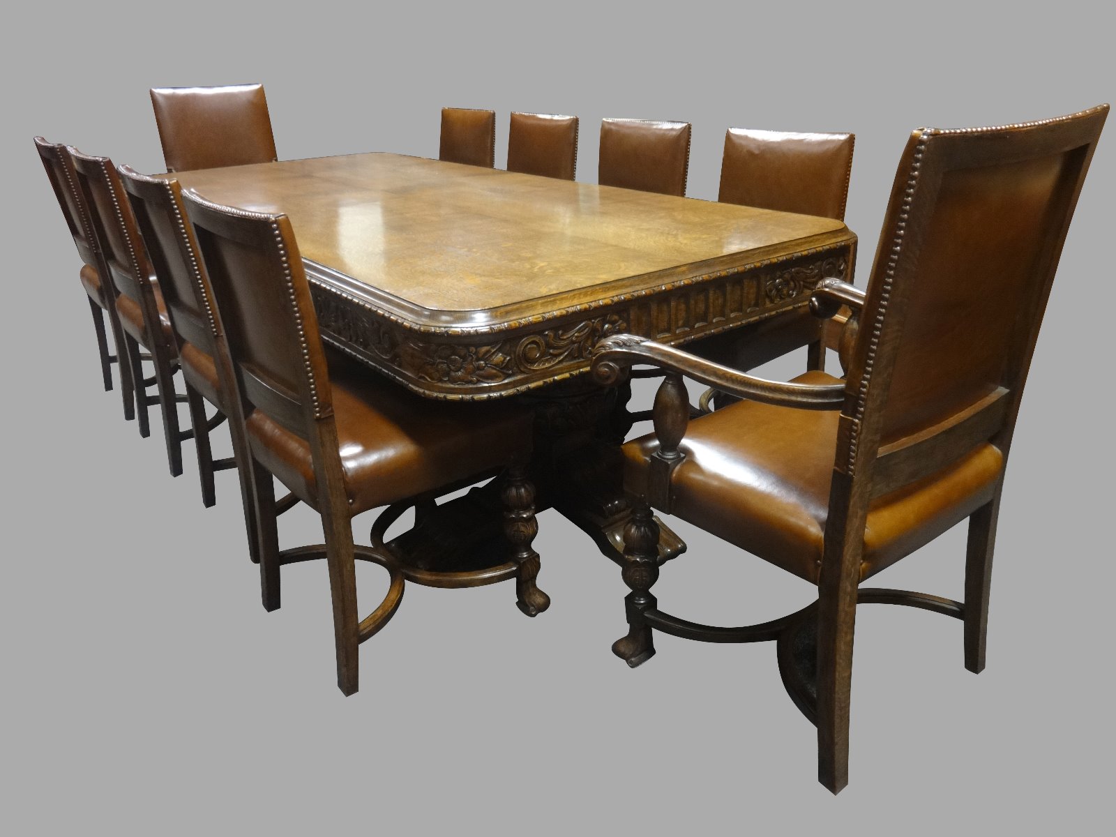 Magnificent Oak Dining Table & Ten Matching Dining Chairs c.1920