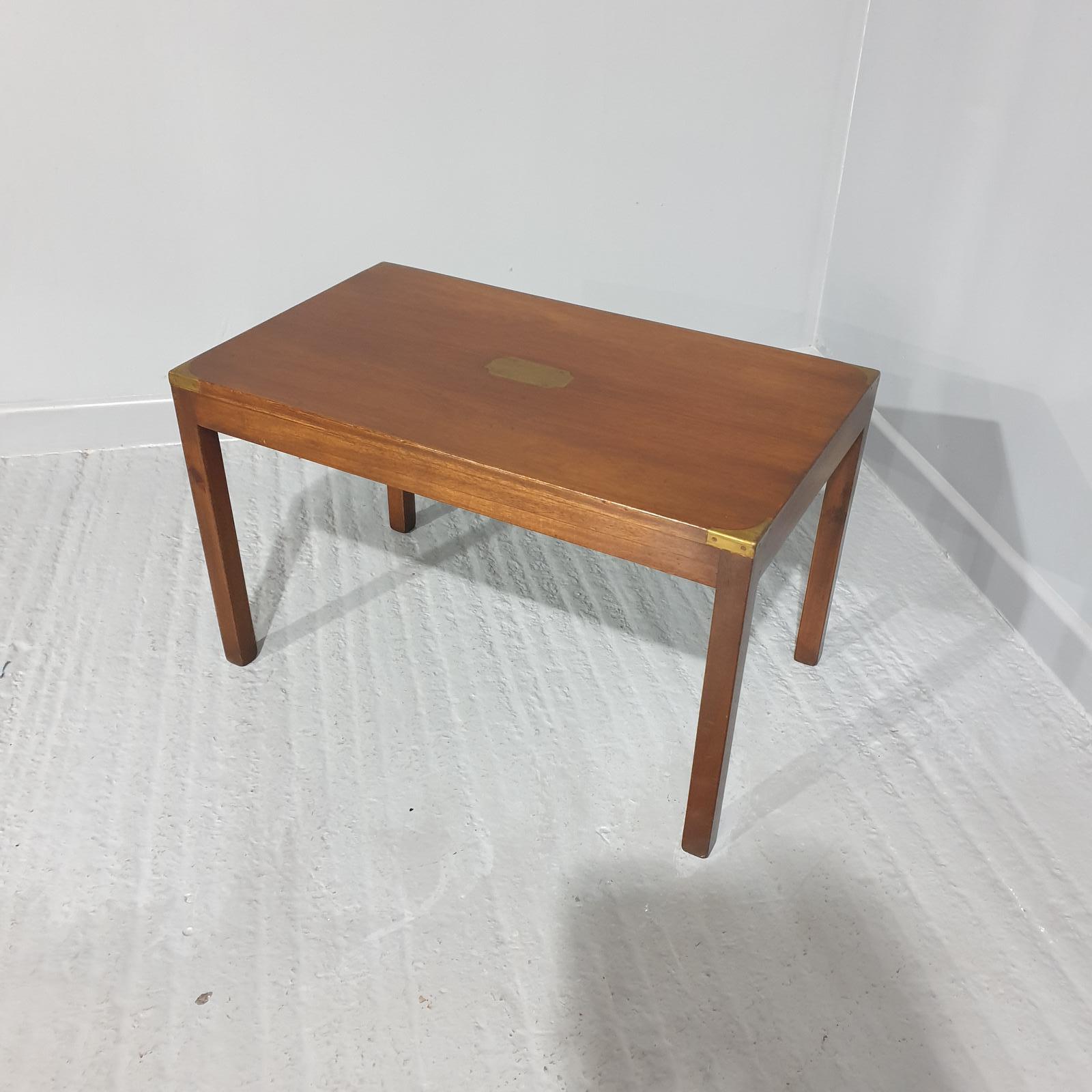 This is a very nice quality mahogany cmpaign coffee table with brass corners and central brass plate, in excellent condition.