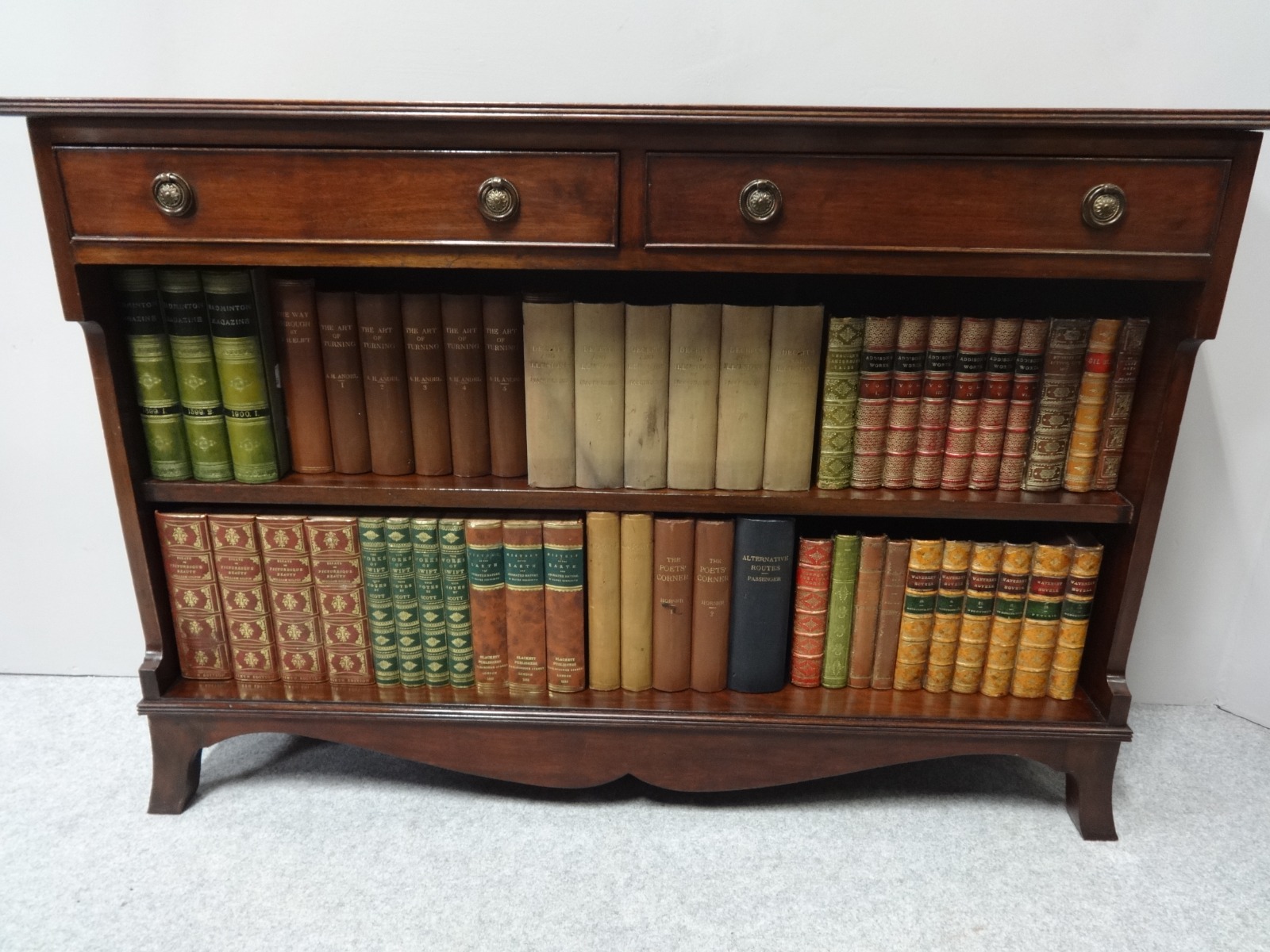A good mahogany low open bookcase with two opening drawers, on outswept feet, in very gook overall condition.