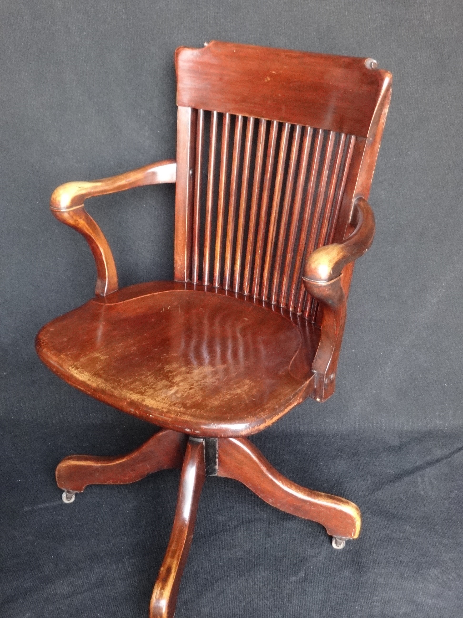Offered for sale is this brilliant mahogany office chair / desk chair which is still in its original condition. It has a rise and fall tilt action.