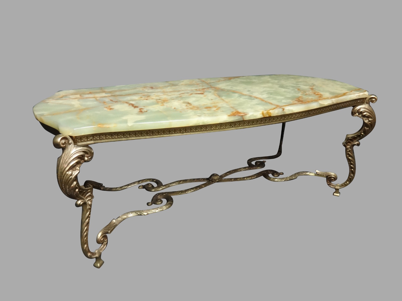 This is a good onyx and brass coffee table with well figured top, in very good condition.