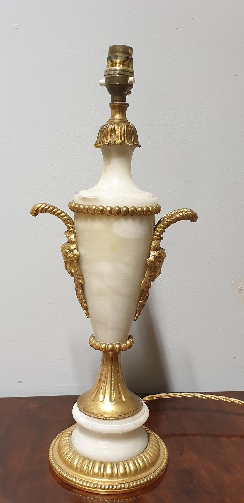 A very nice marble table lamp with ormolu mounts, rewired and in great condition.