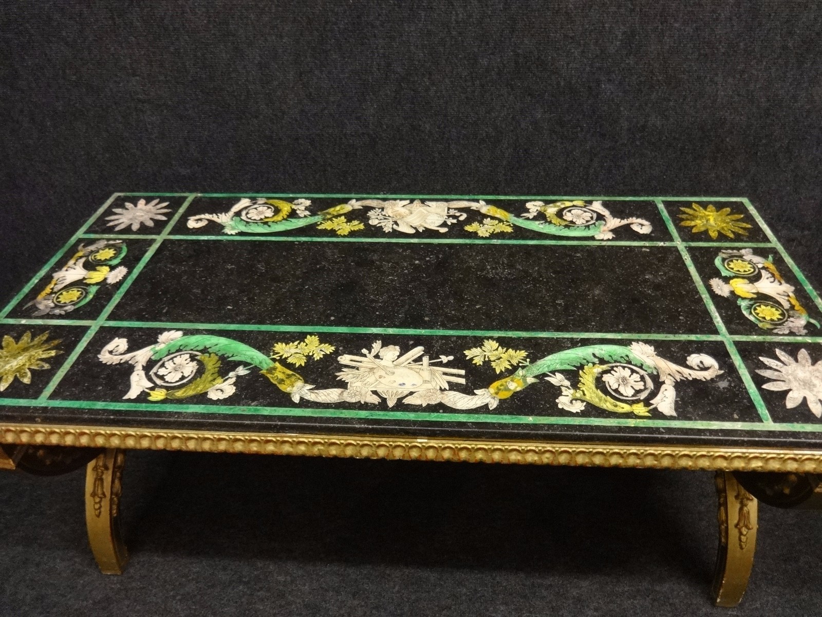 This is a fantastic antique handpainted marble topped coffee table with cherubs, garlands and a carved giltwood base.