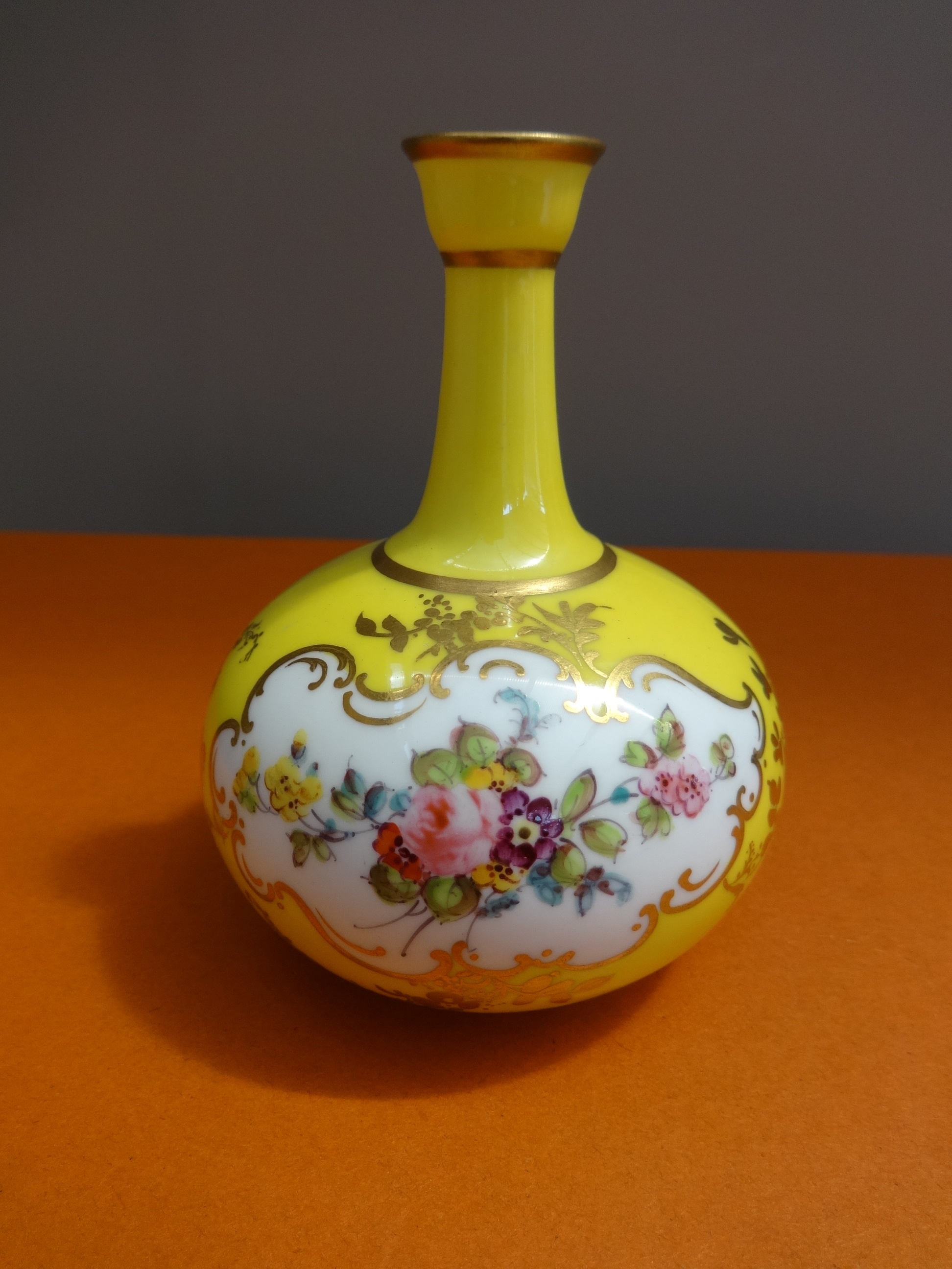 With yellow ground and handpainted gilding and flowers, in mint condition.
