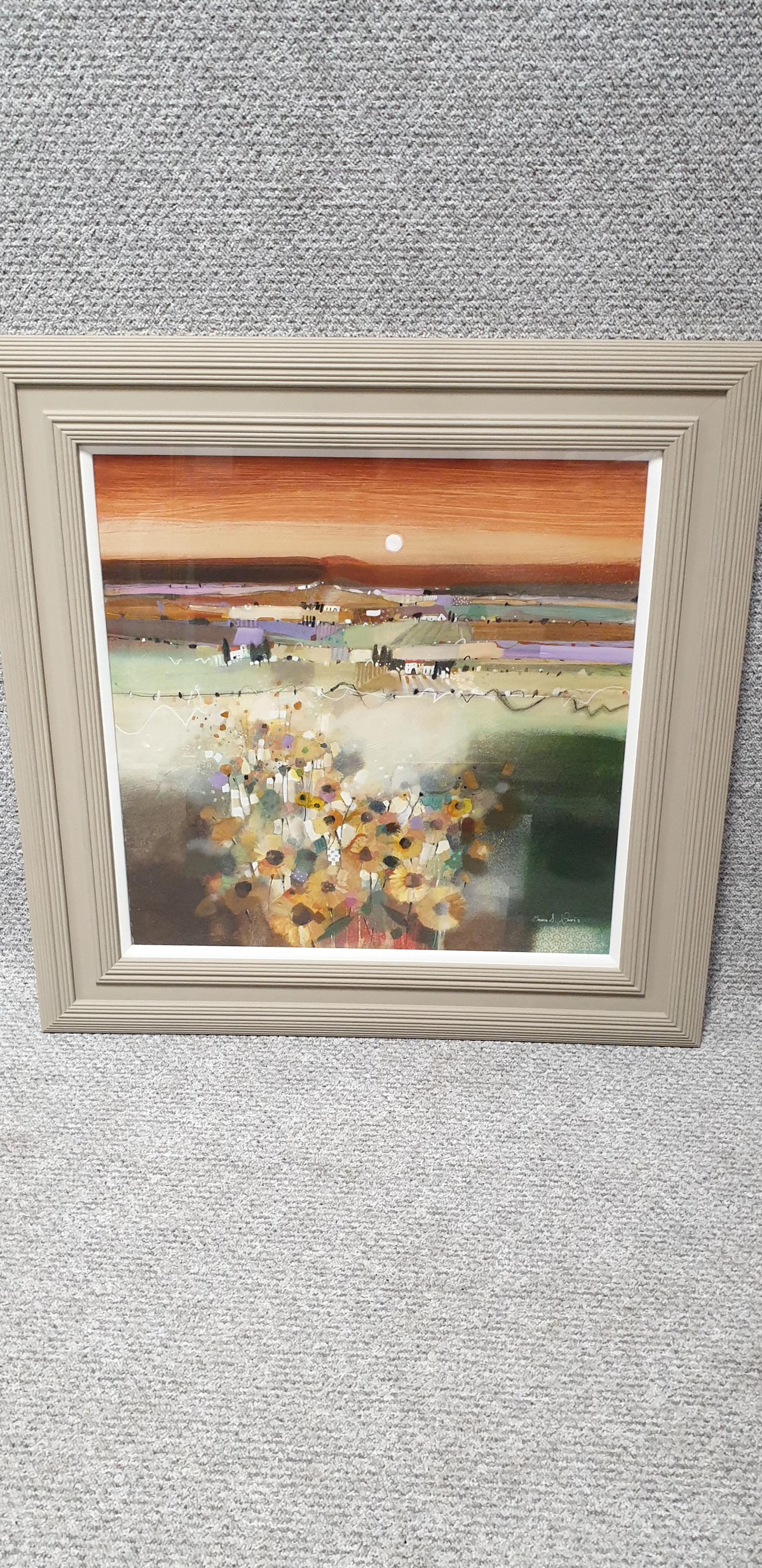 A very nice mixed media on board entitled 'Sunflowers' by Scottish artist Emma Davis R.S.W.P.A.I, Signed bottom right, and signed and titled verso, framed and glazed