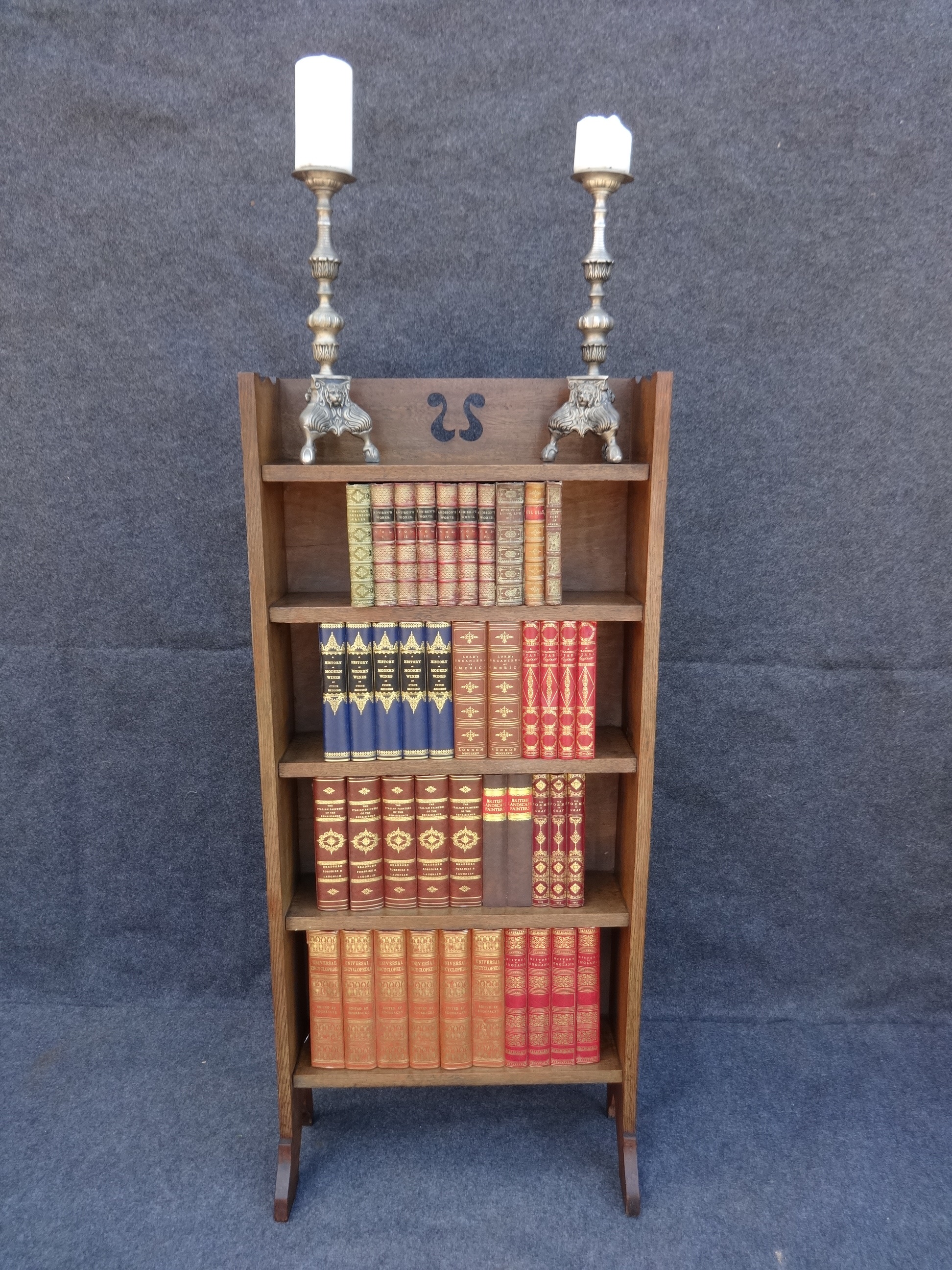 Offered for sale is this fabulous antique 19th Century Arts and Crafts oak open bookcase which is in original good condition. There is a cut out detailing to the top.