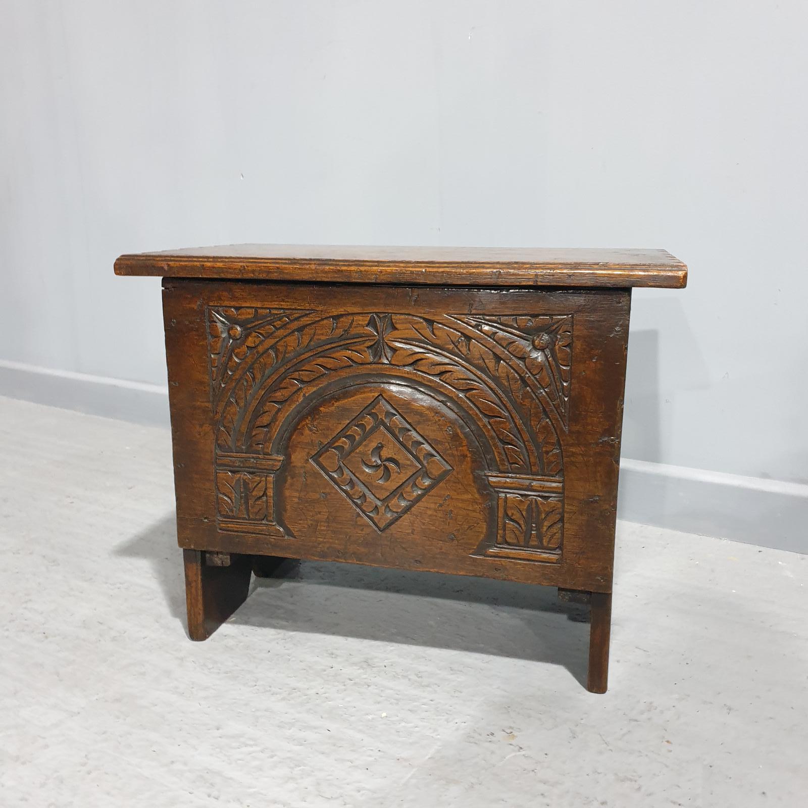 Offered for sale is this very good carved oak coffer of small proportions, in overall great colour and condition.