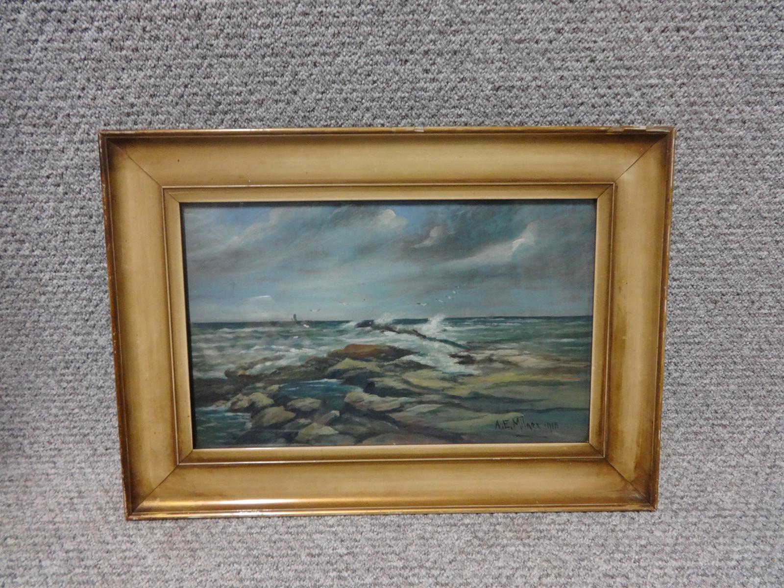 A very nice seascape oil on canvas by A.E. Milnes #British early C20th in gilt and glazed frame, signed and dated lower right 1911.