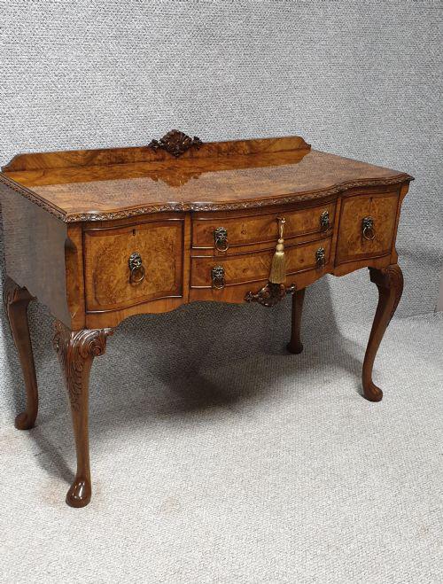 A superb all over burr walnut double serpentine sideboard of small proportions, two drawer either side a bowed drawer, working locks, standing on tall cabriolet legs, excellent colour and condition.
