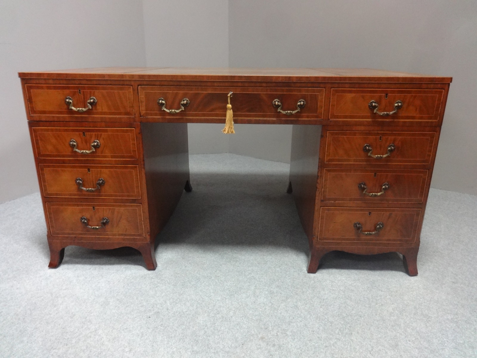 Outstanding Edwardian Inlaid Mahogany Partners Desk