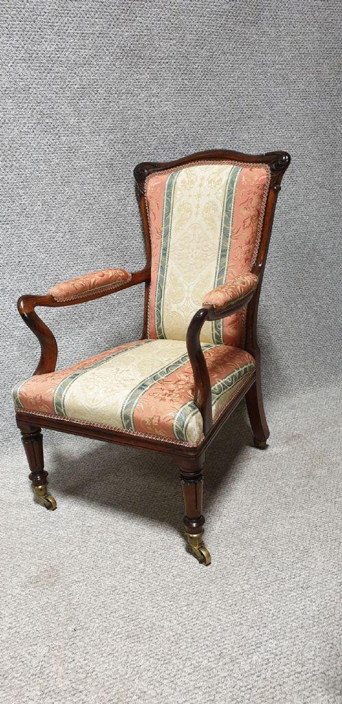 Excellent quality William 4th rosewood library chair, brass cup castors. Excellent colour and condition.