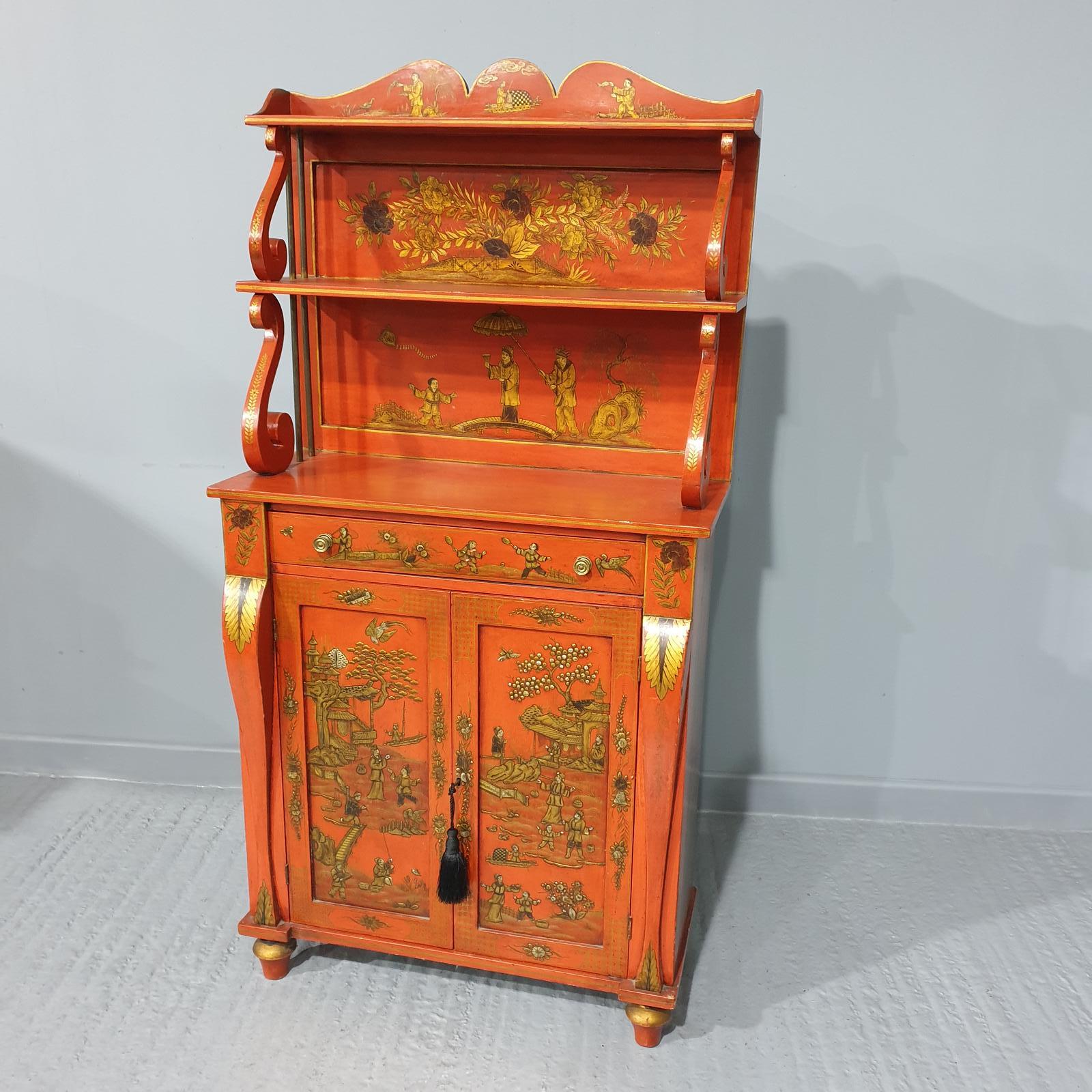 Outstanding Scarlet Regency Chinoiserie Lacquered Side Cabinet