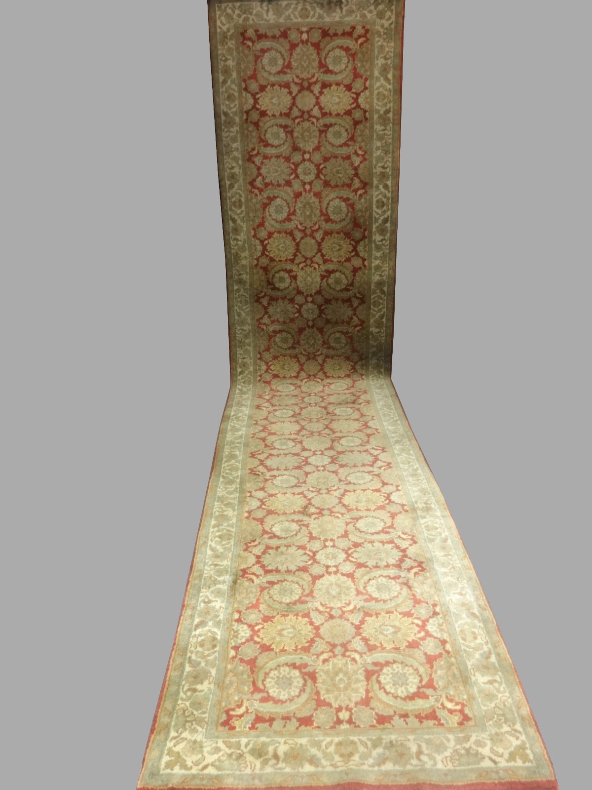 This is a very good Indian hand knotted Indo Zeigler Runner, vegetable dyed, hand knotted, lovely colours and only slight ware.