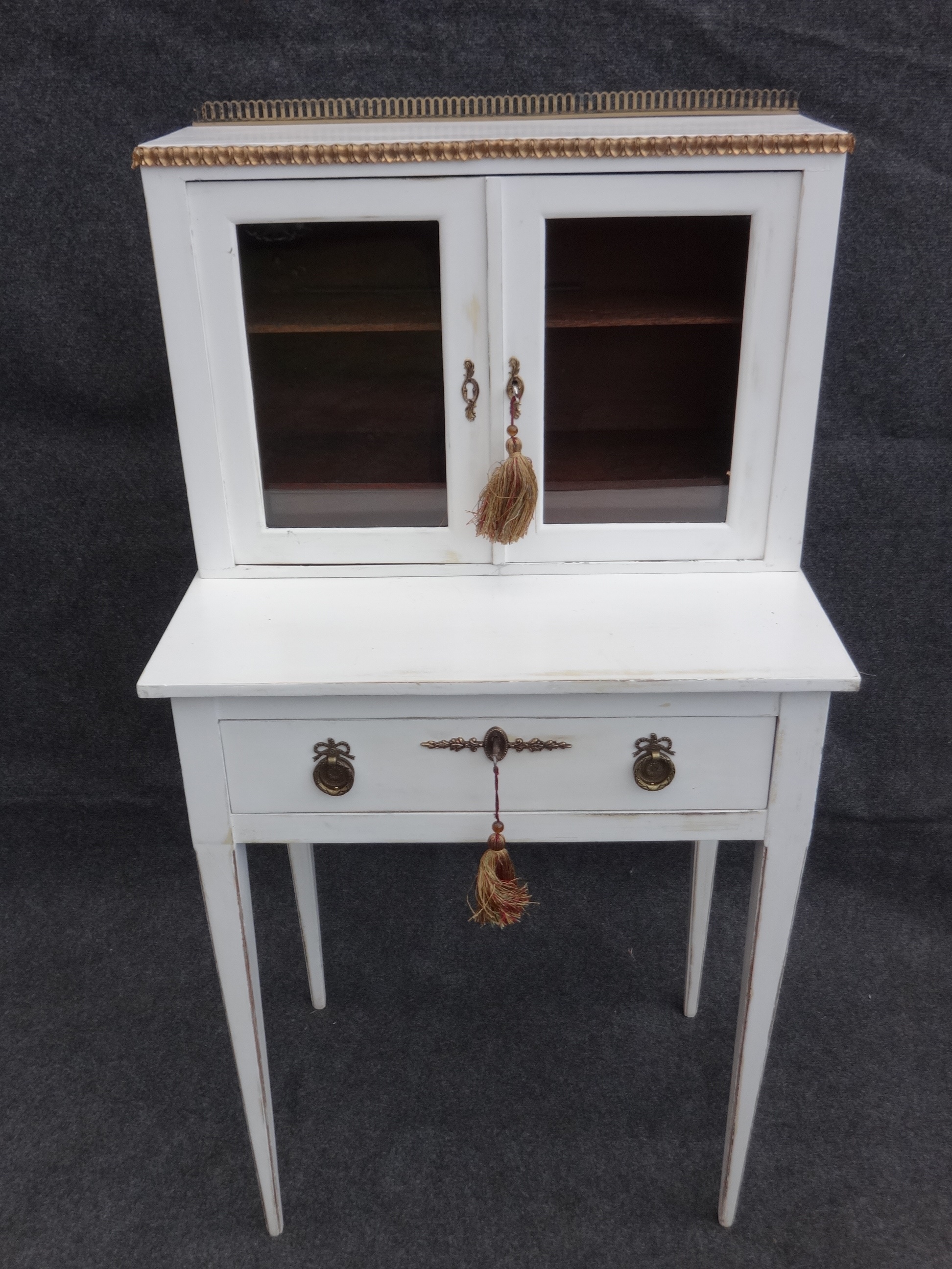 Offered for sale is this fantastic 19th Century antique Ladies painted writing desk of small proportions, base with single drawer, desk and ink wells within, top with small drawer and shelving.