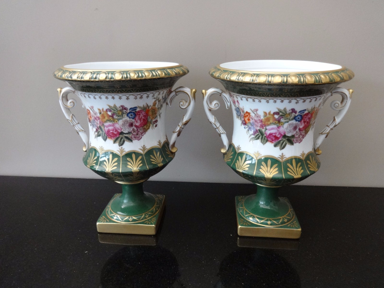 Offered for sale are these fantastic pair of hand painted and gilded Dresden vases which are in excellent condition.