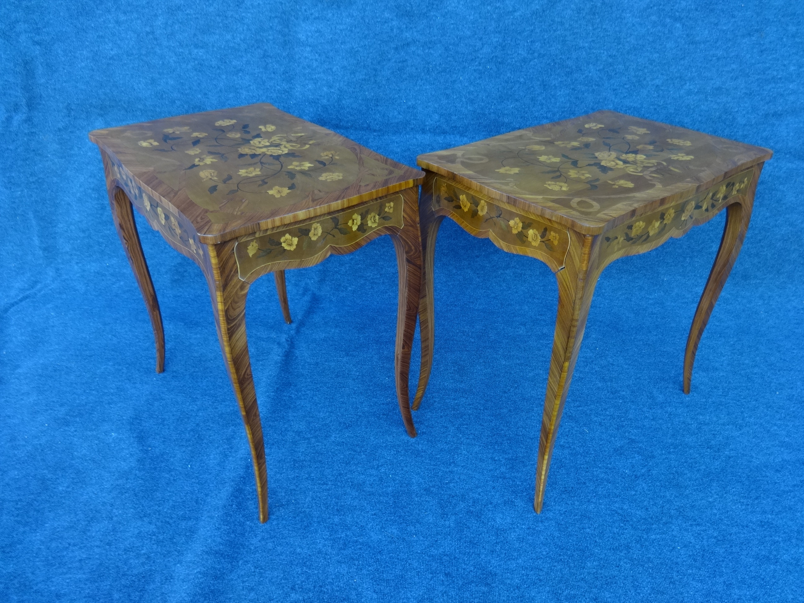 Pair English Marquetry Side Tables by 'Maple & Co'