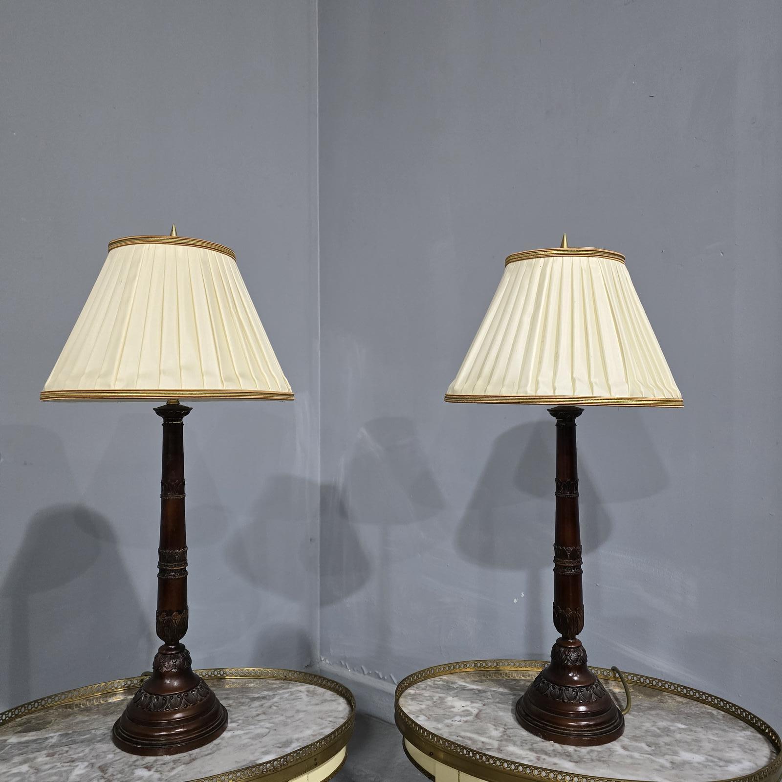 Excellent pair metall bronzed table lamps, in excellent overall condition.