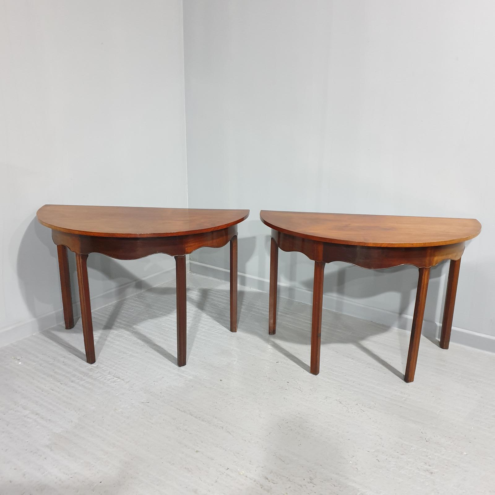 A very good pair of Georgian console tables, solid mahogany with nice scolloped frieze, excellent colour and in very good original condition.