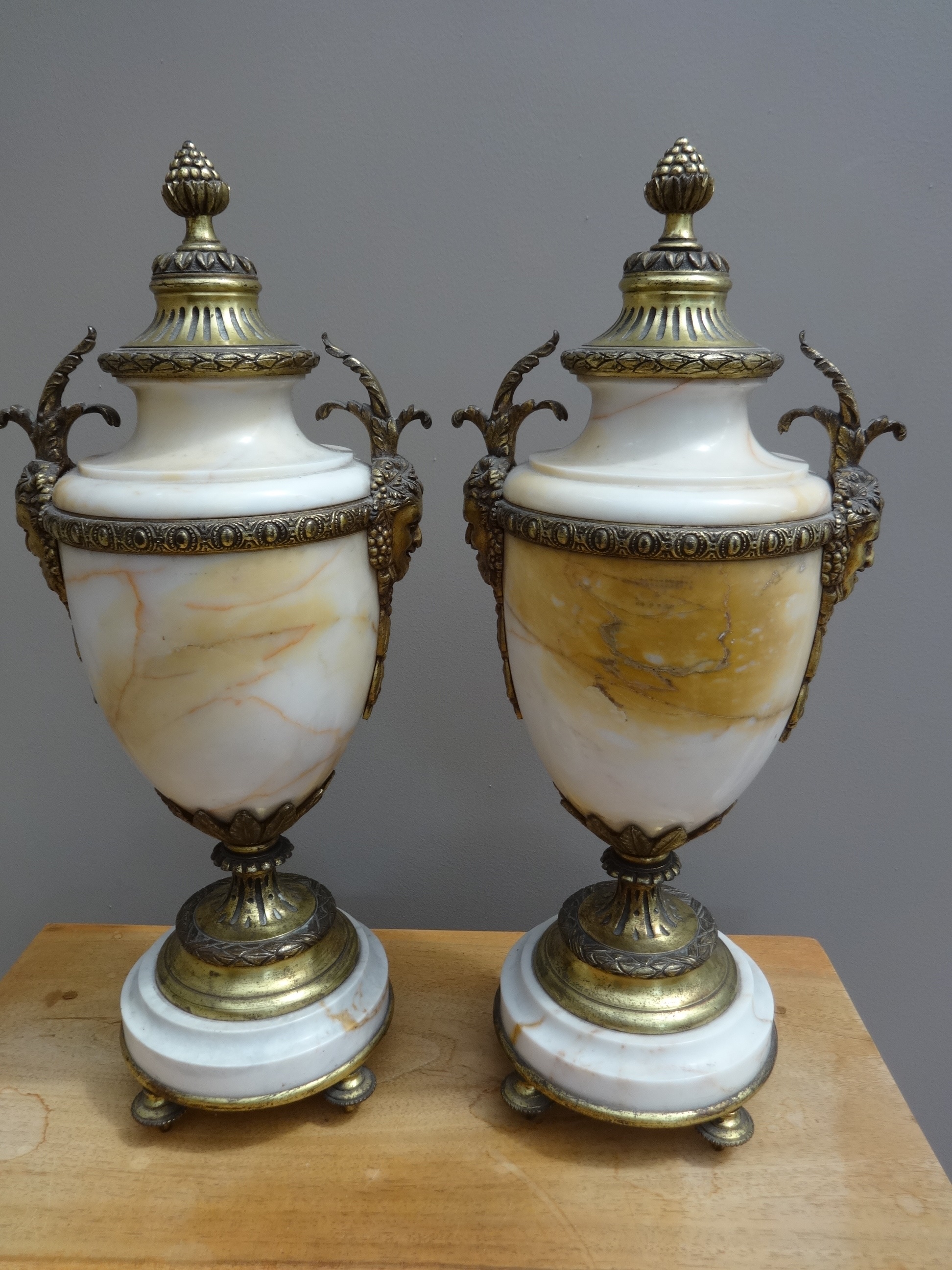 Pair Gilt Metal and Marble Urns/Cassolettes