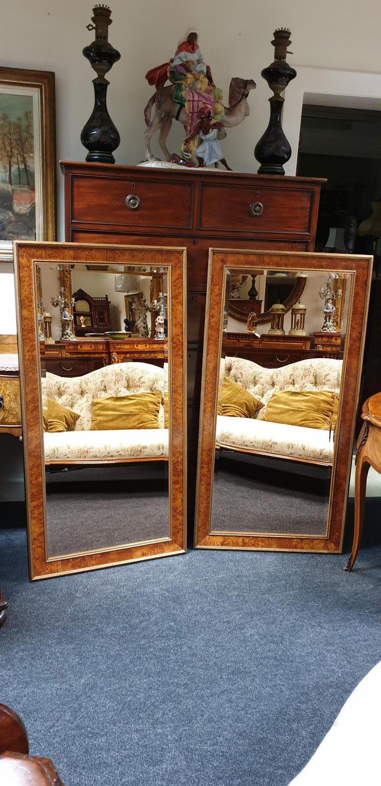 A very nice pair of large burr walnut mirrors with slightly tinted bevelled mirror glass, in excellent condition.