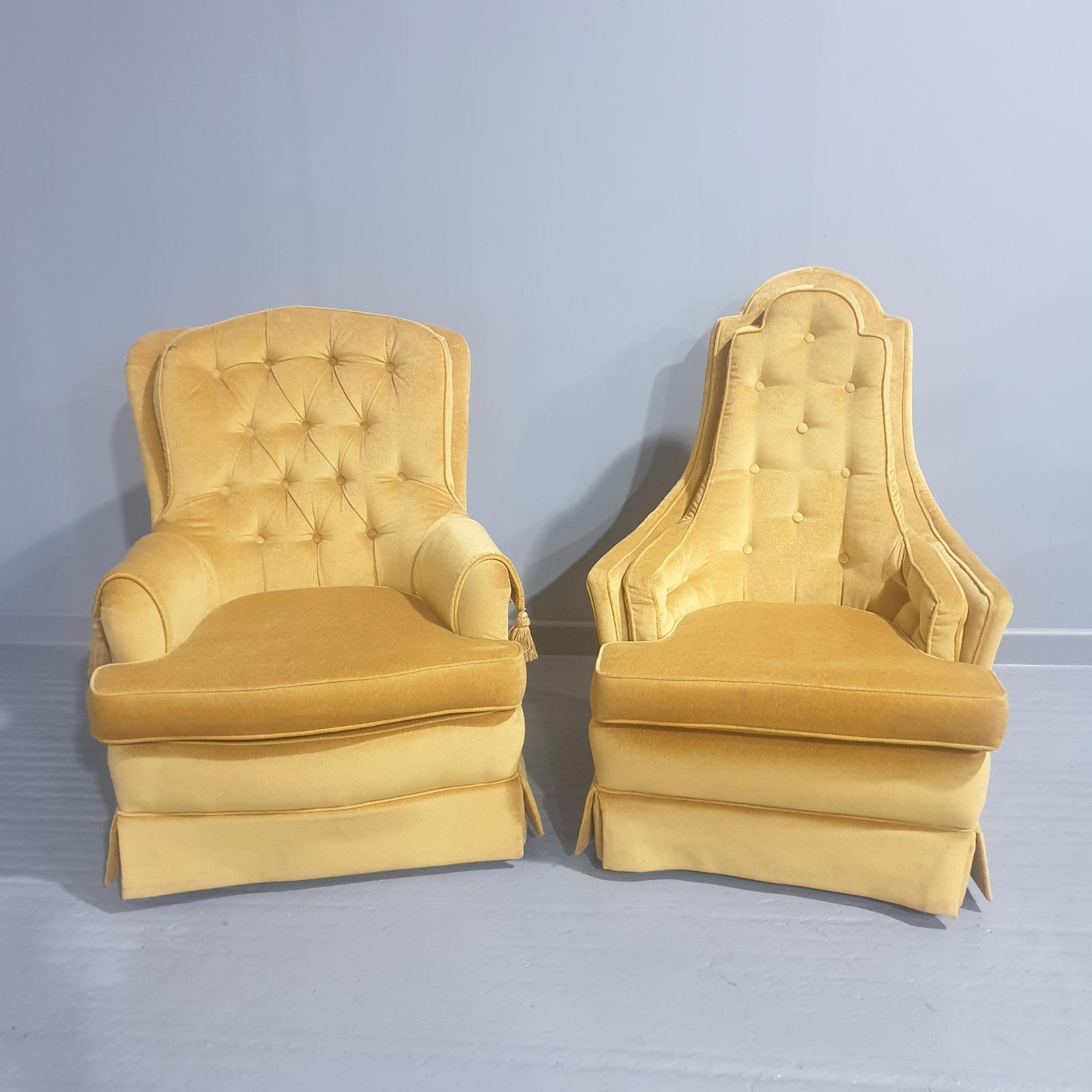 These are a very good pair or buttoned armchairs in gold plush upholstery, in excellent condition.