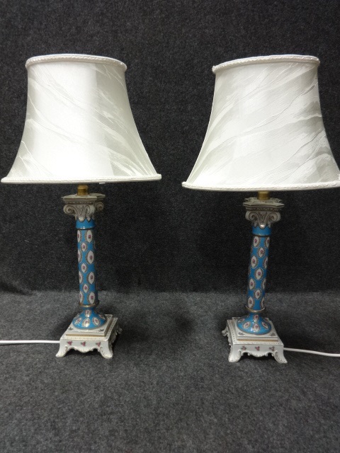 This is a very pretty pair of Dresden lamps modelled as corinthium columns, in excellent condition. They have been rewired.