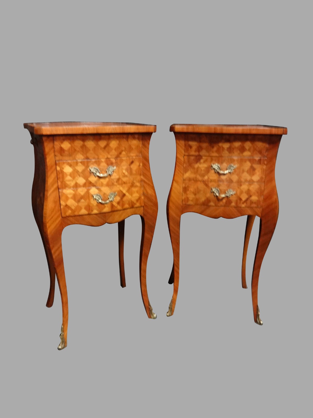 Pair of Exquisite French Parquetry Bedside Lamp Chests of Drawers