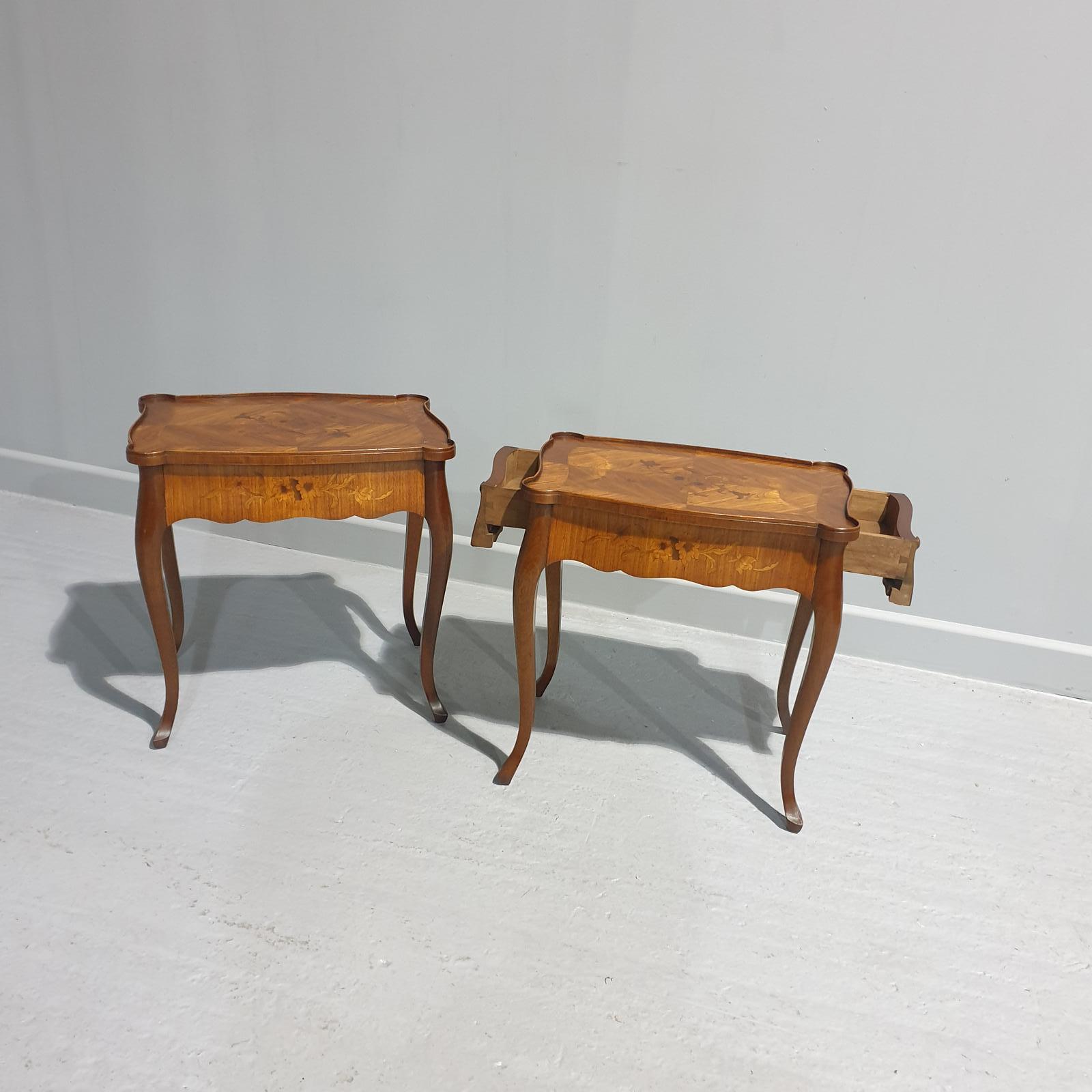 This is a very good pair of French antique marquetry end, bedside or lamp tables with double end drawers in excellent condition.