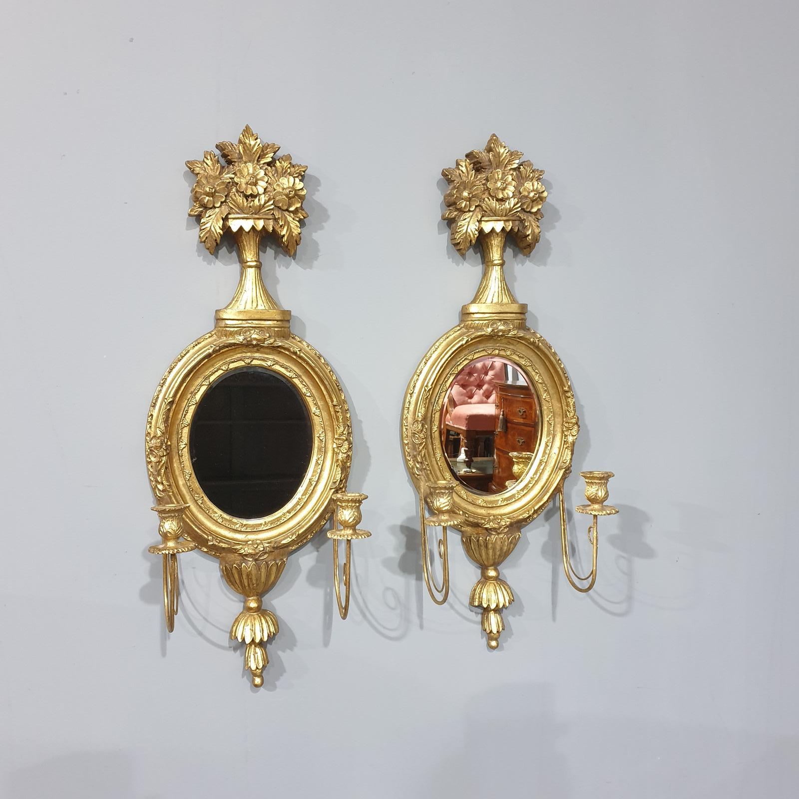 These are a very nice pair of Italian girondole mirrors, with bevelled mirror plate and twin candle holders.