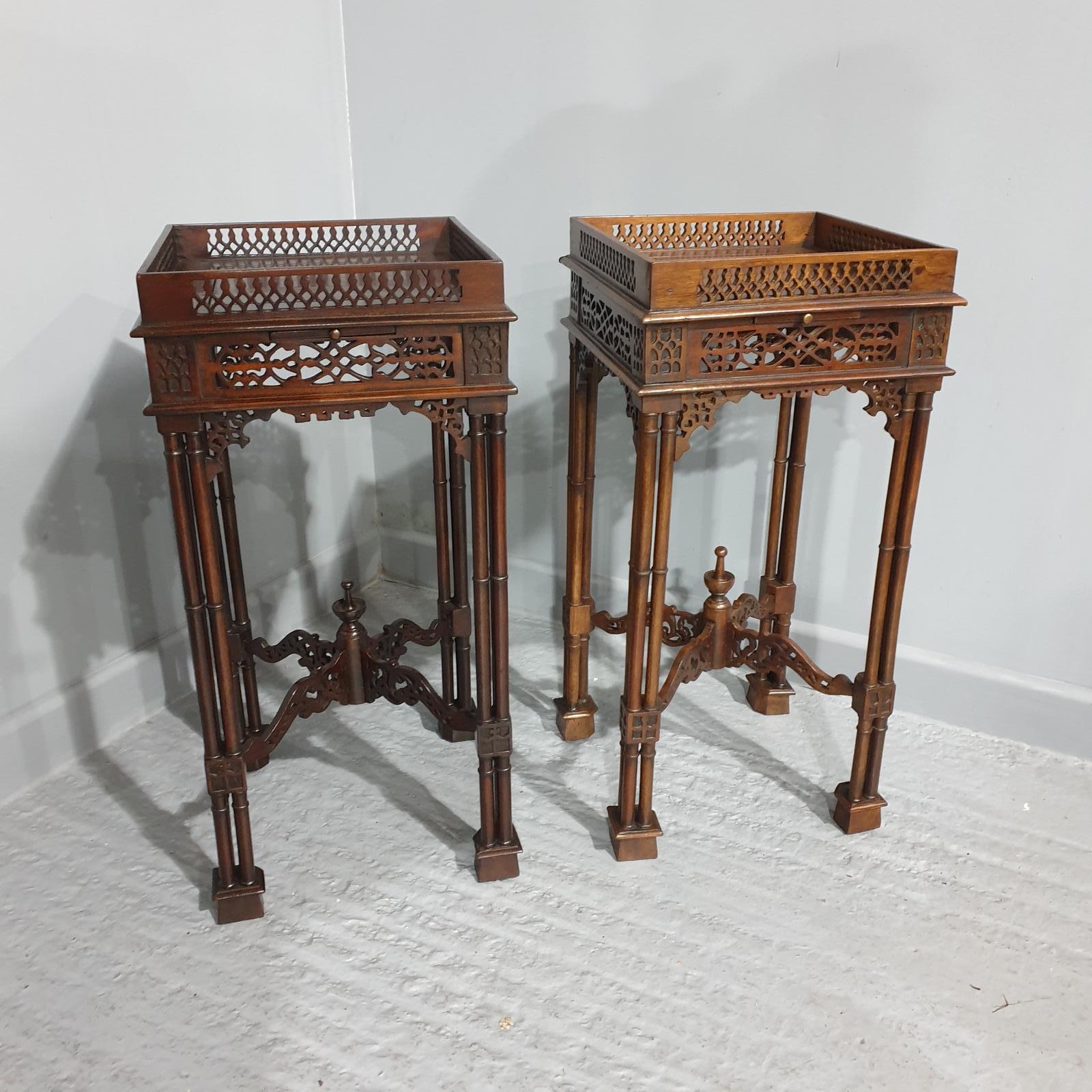 These are a good pair of mahogany lamp or bedside tables in overall very good condition.