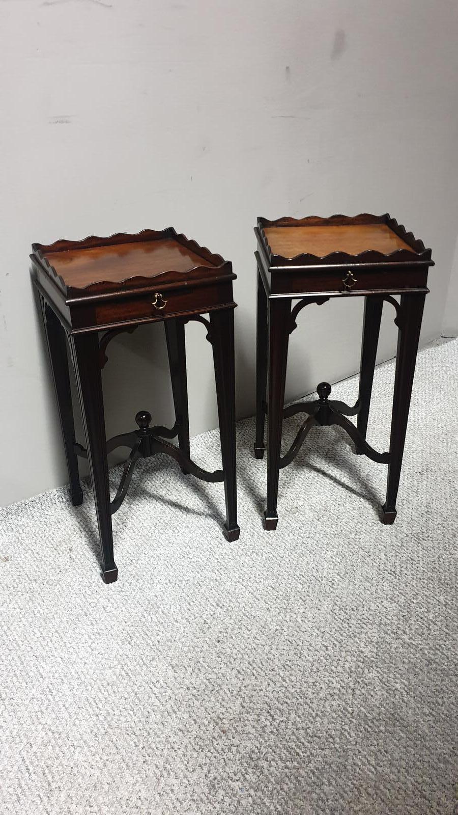 A good pair of Edwardian mahogany lamp night stands, small slides with brass handle, in very good overall condition.