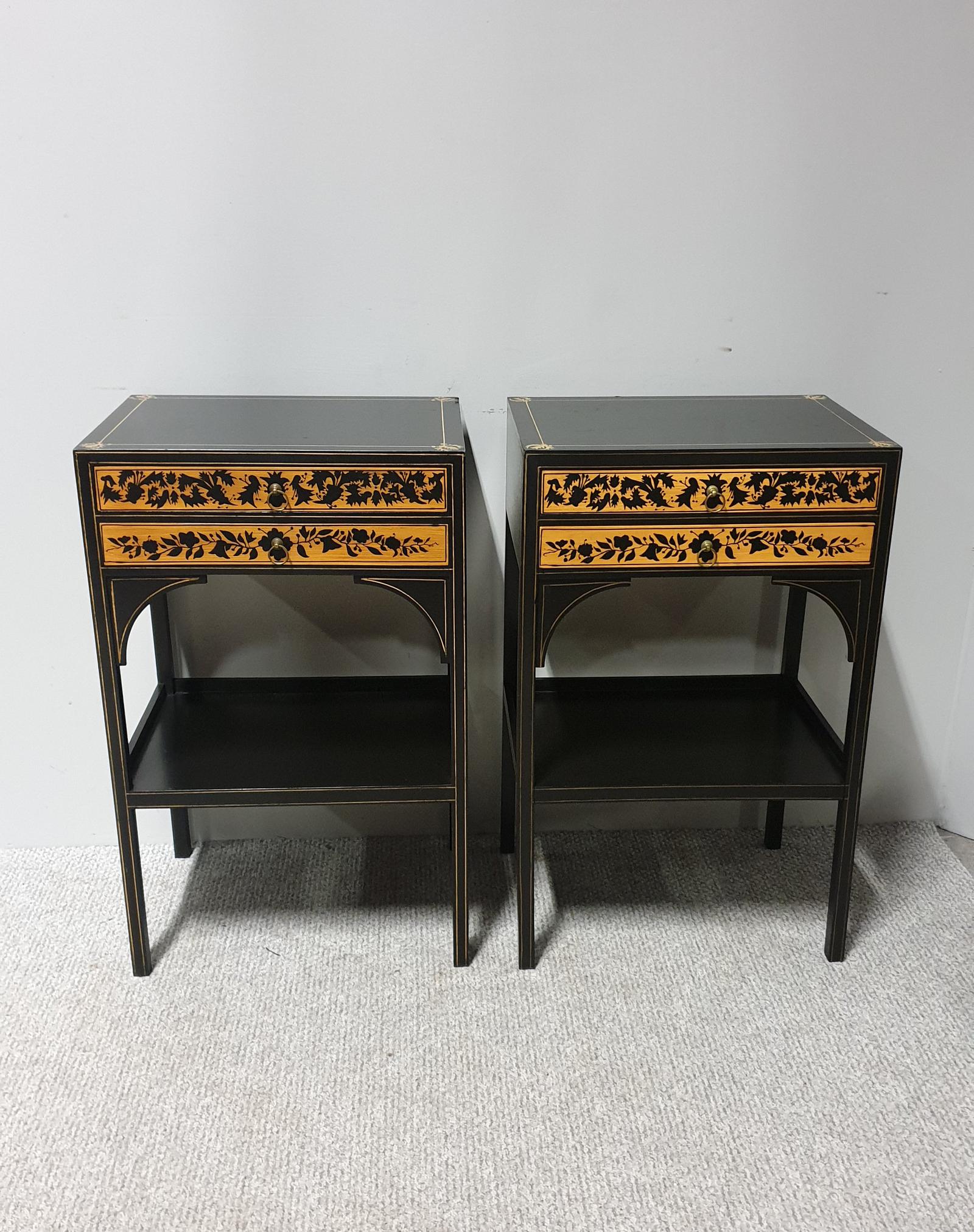 A very nice pair of black painted side tables, can be used for bedside chests, in overall excellent condition.
