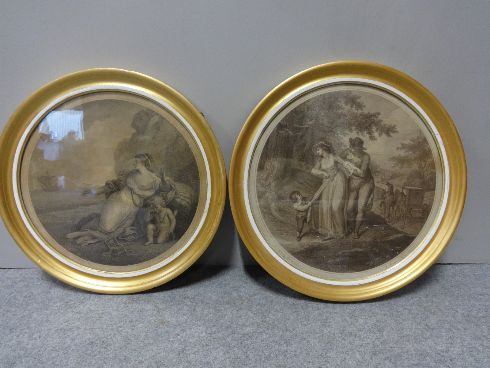 A good pair of 19th Century Regency antique engravings in original gilt frames.