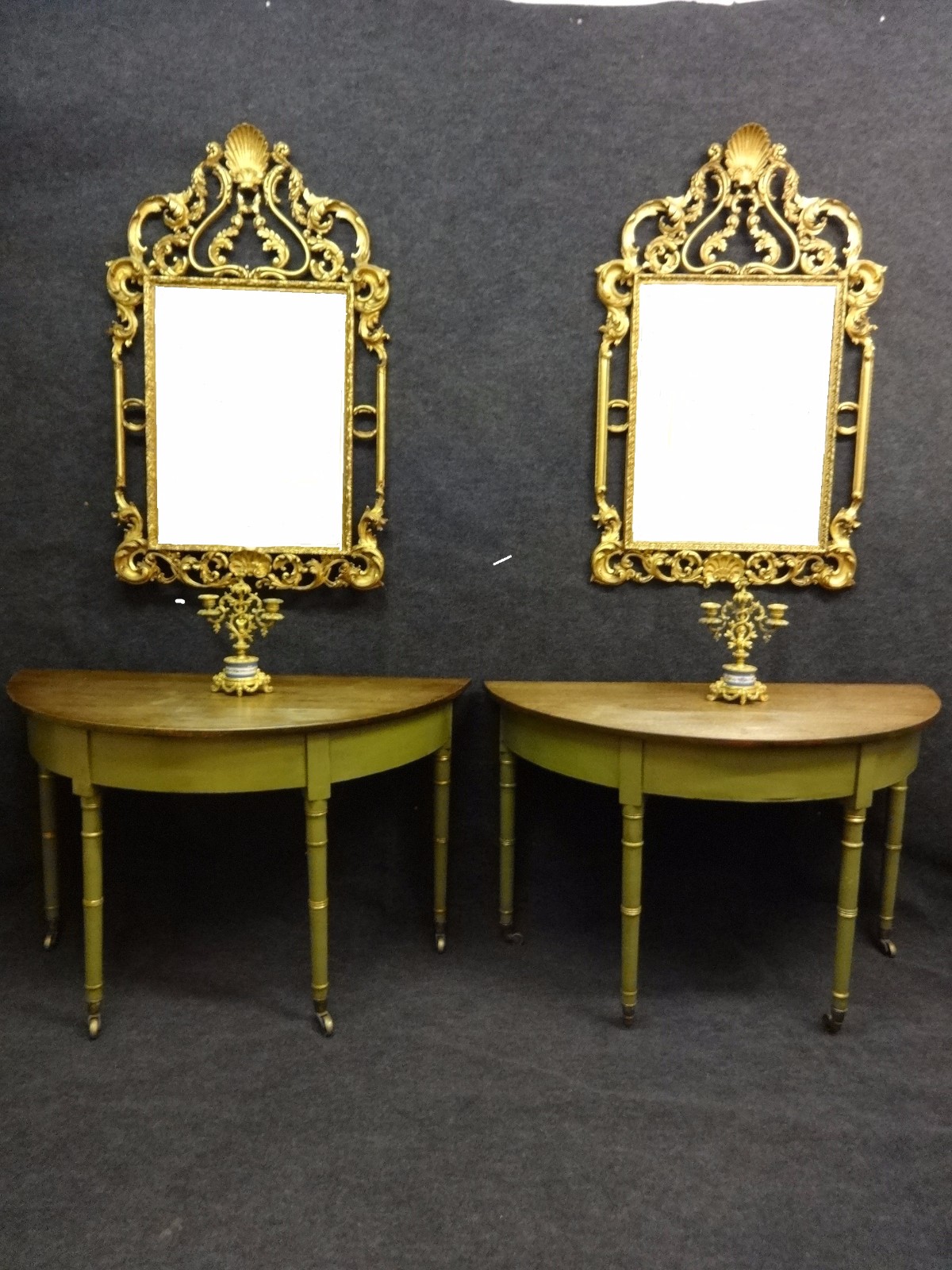A good pair of 19th Century Regency antique console tables, later painted, original brass castors, in very good condition.