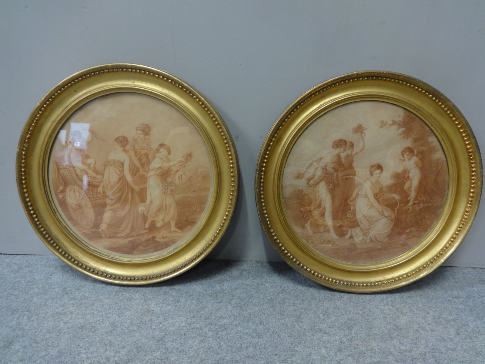 A nice pair of 19th Century Regency antique sepia engravings in original gilt frames.