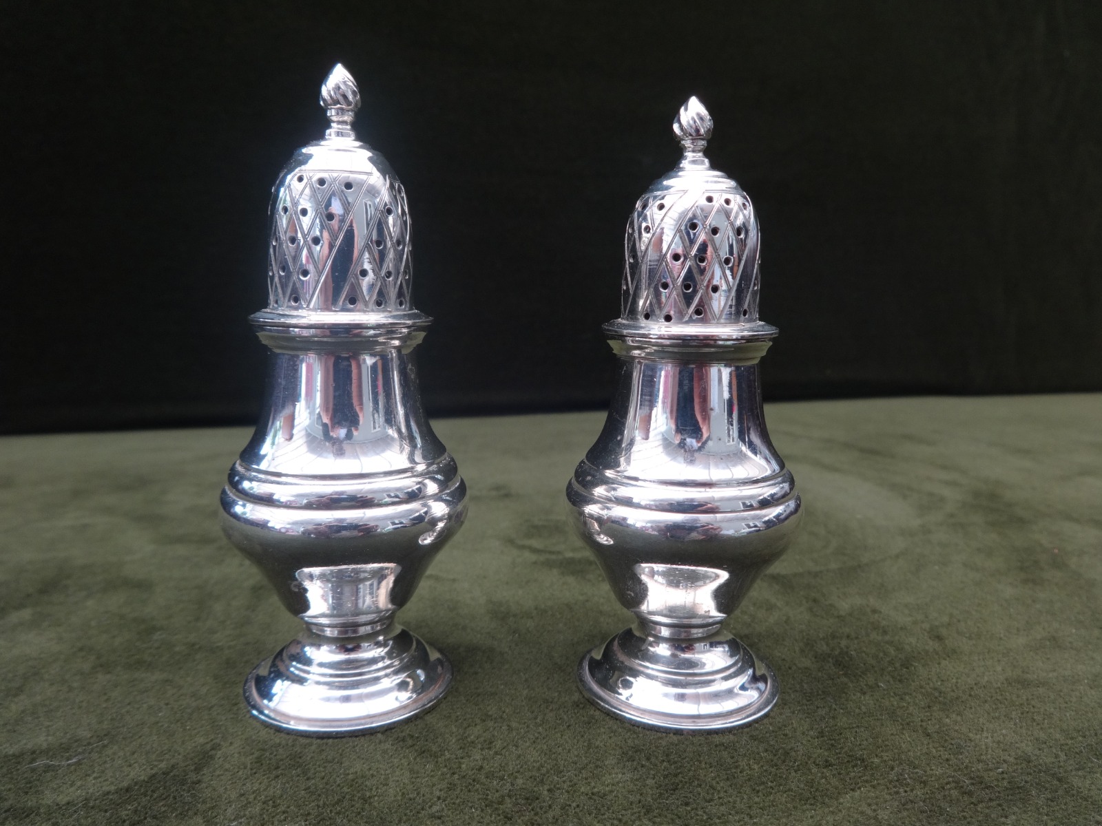 A nice pair of silver hallmarked peppers by JB Catterley & Sons Birmingham 1964.