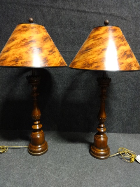 Pair of Turned Wooden Lamps