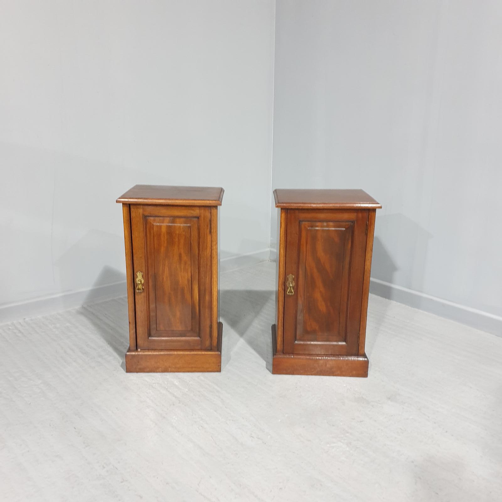 Pair of late 19th Century English Victorian antique mahogany bedside cabinets in overall very good condition.