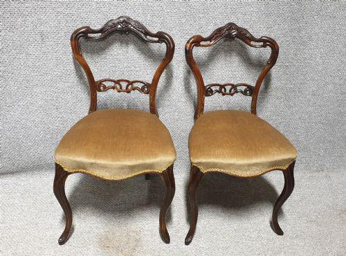 A very nice pair of Victorian rosewood hall chairs with original gold plush upholstery. Excellent colour and condition.