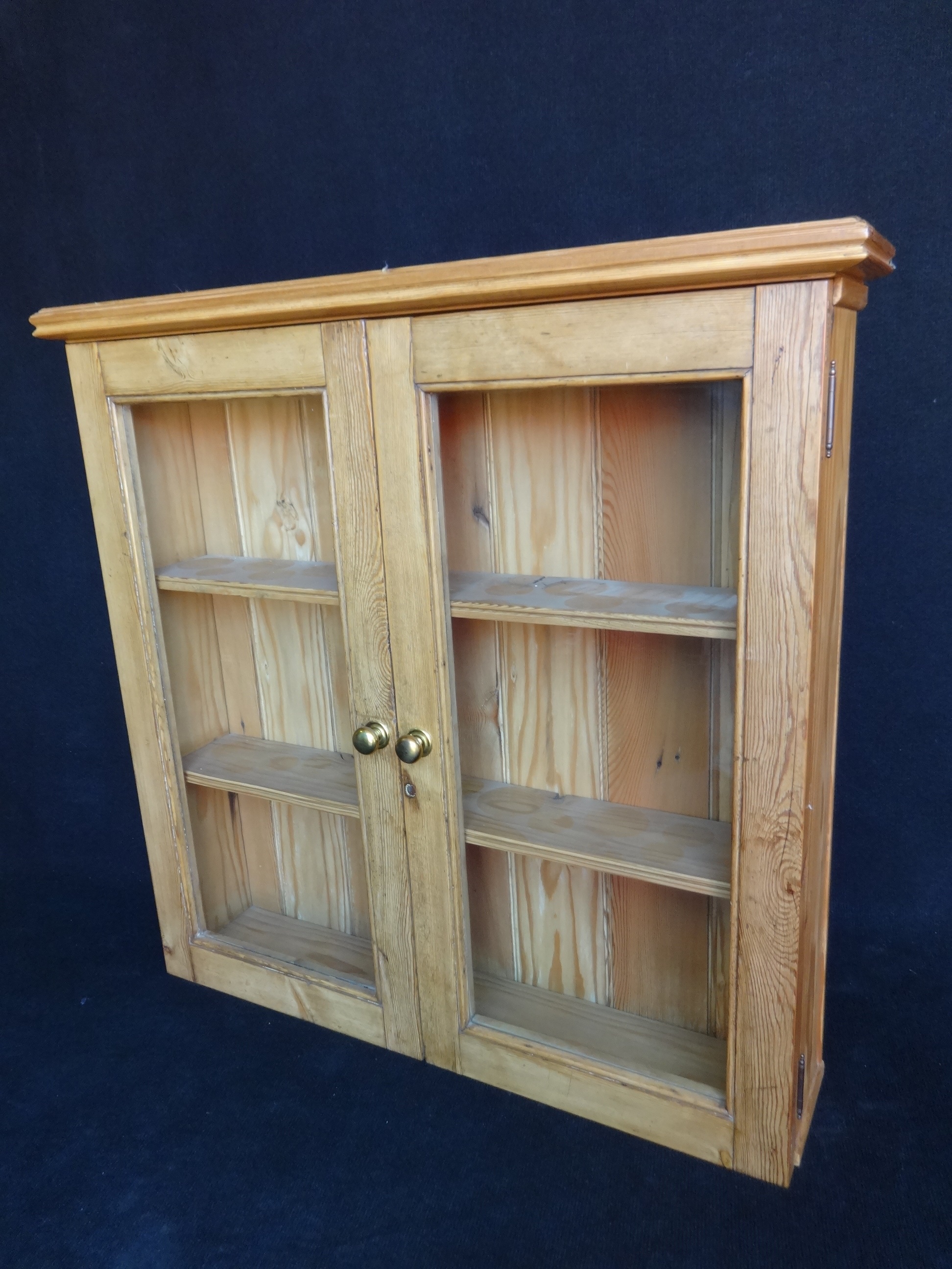 This is a fabulous antique 19th Century pine hanging wall cabinet which has 2 doors and 2 shelves and has recently been waxed.