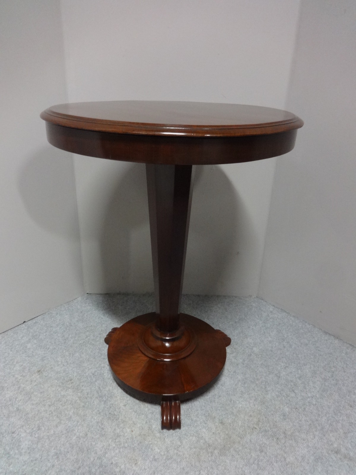 A very good quality mahogany pedestal table with octagonal stem and circular base, excellent colour and condition.