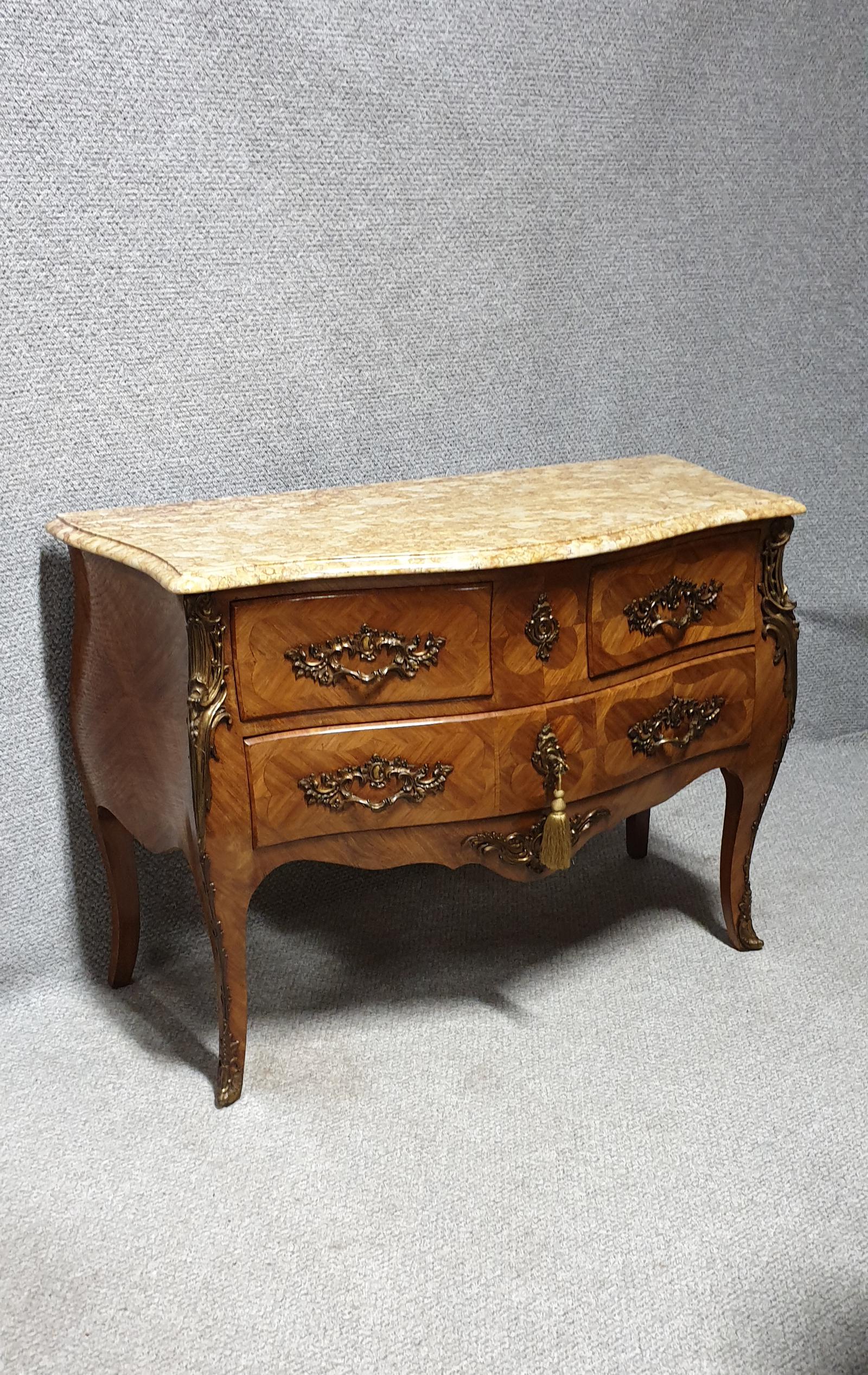 Excellent quality French tulipwood commode chest of drawers, ormolu mounts and handles, excellent colour and condition.