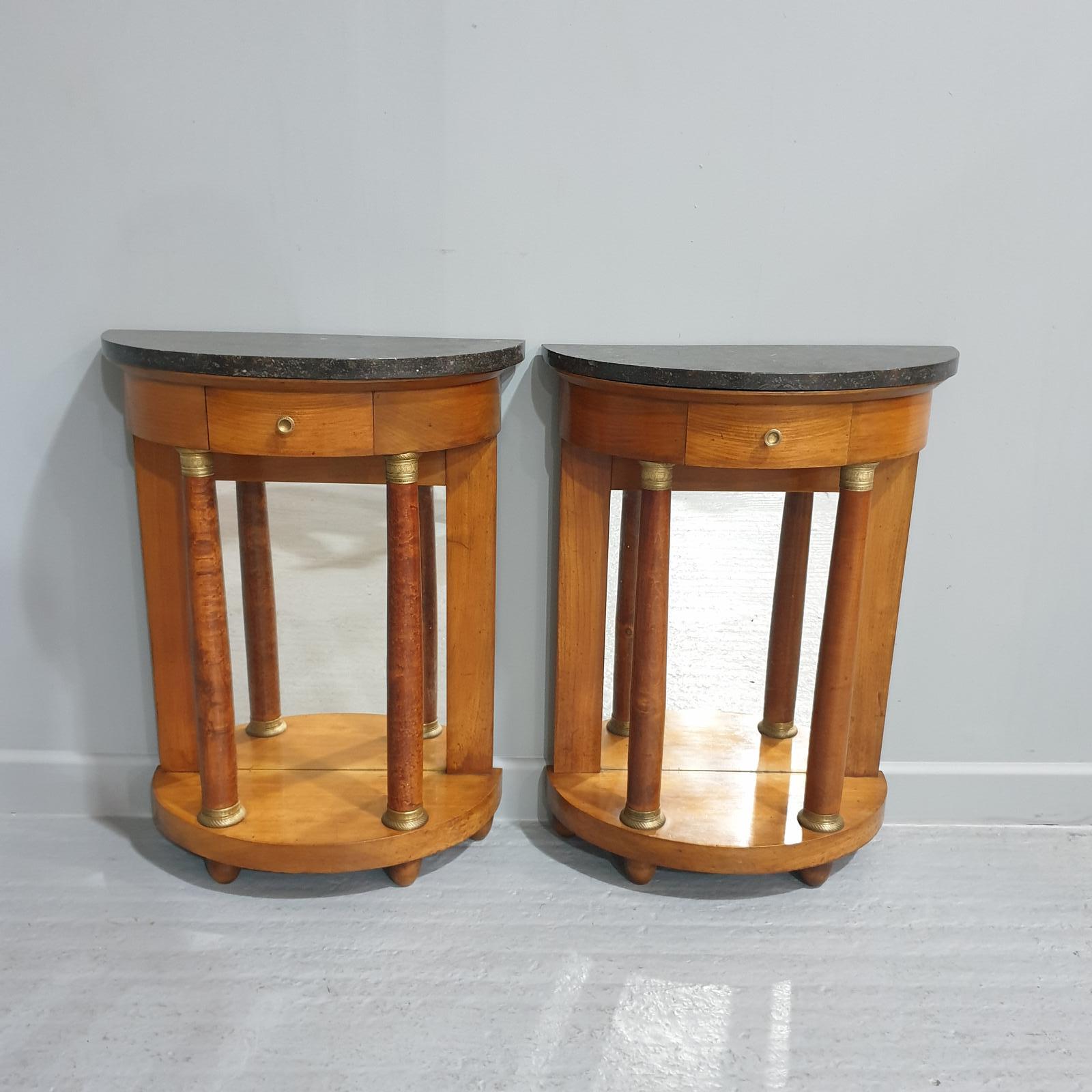 Quality Pair of French Empire Walnut Console Hall Tables