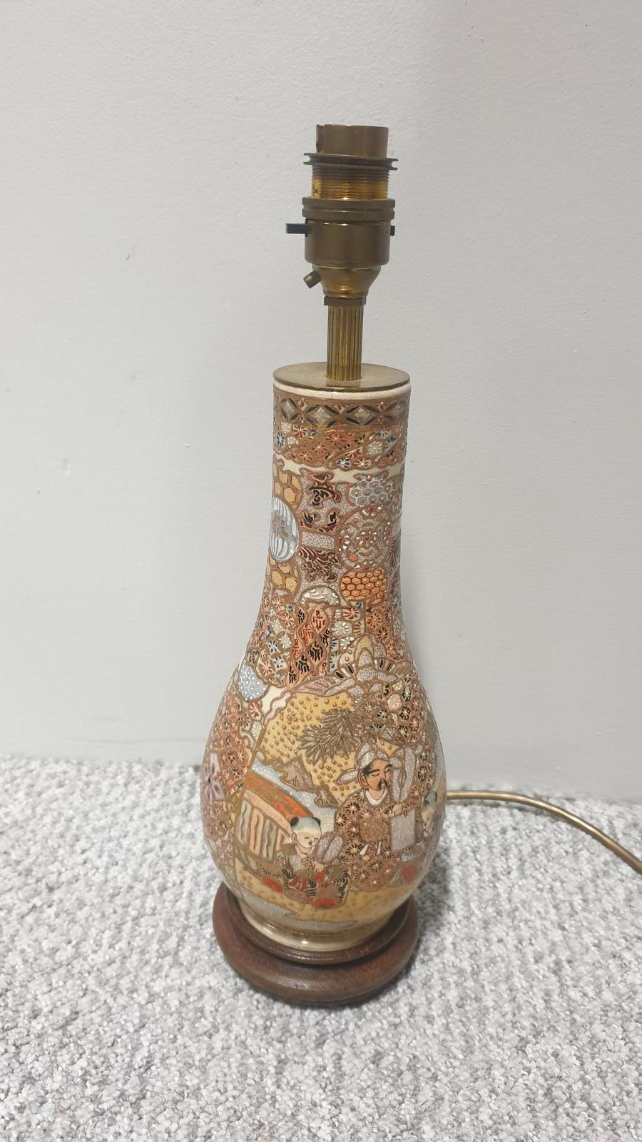 This is a very good quality Satsuma table lamp on wooden base with brass fittings, in excellent original condition.