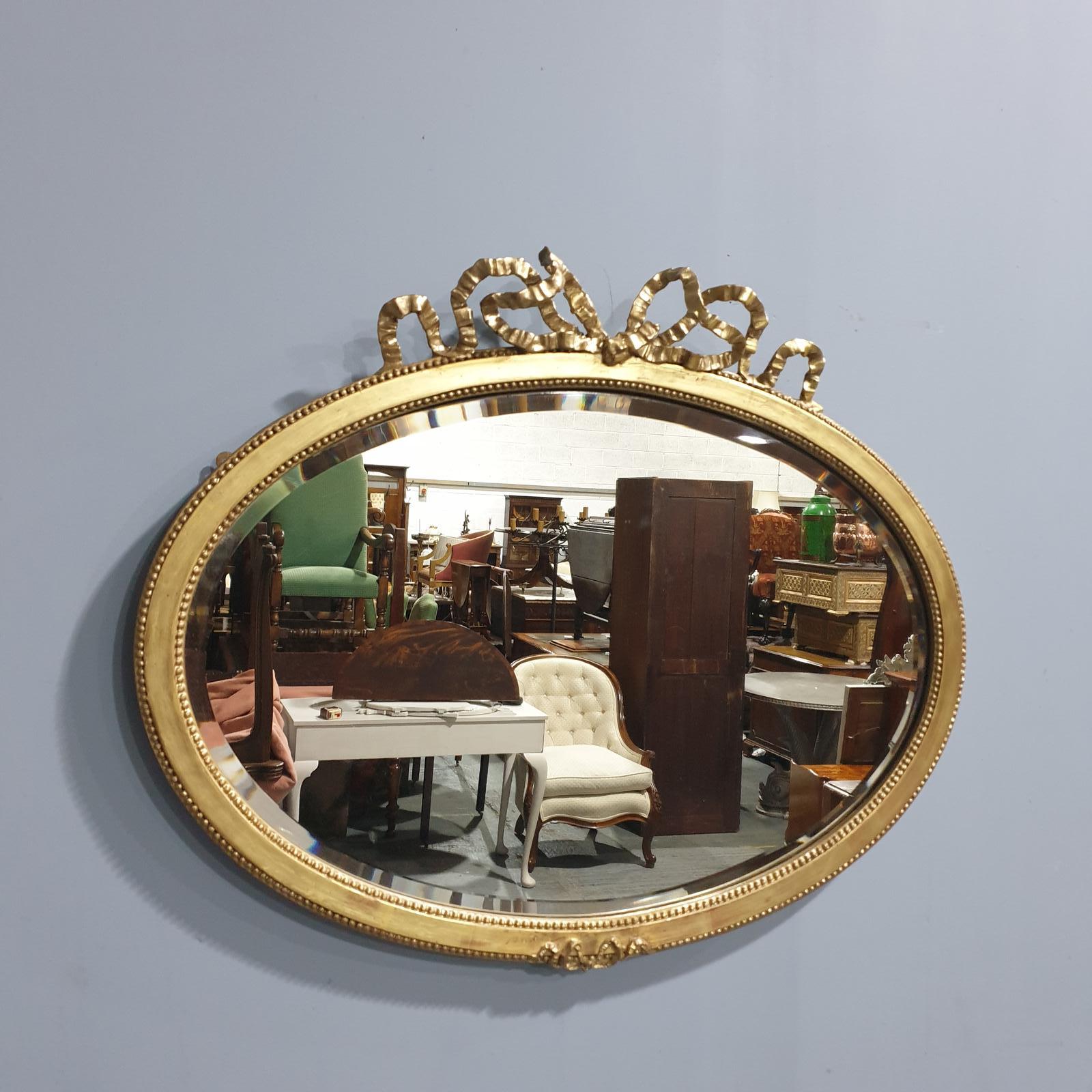 This is a super Adam oval gilt mirror with original bevelled mirror plate, ribbon detailing to the top, in overall very good condition.